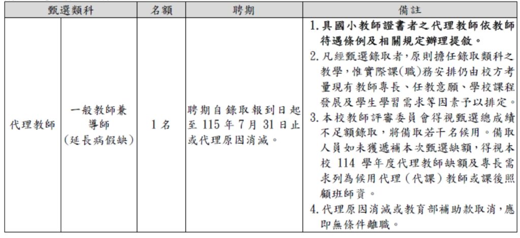 (一)代理教師甄選:報名費新台幣800元整,親自或委託報名,其他方式報名概不受理;既經報名,不得以任何理由要求退費。如因個人資料登錄之錯誤造成試務作業延宕、失誤及損失須自行負責。